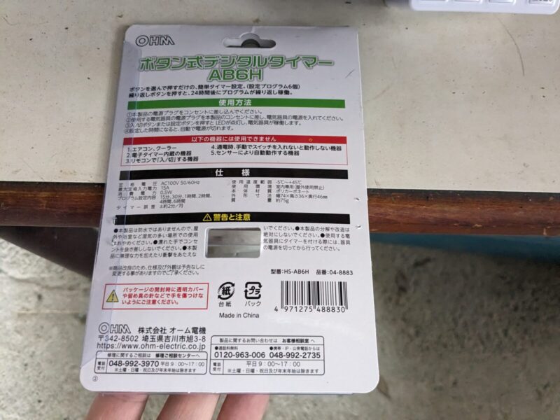 | 商品名 | ボタン式デジタルタイマー AB6H(型番:HS-AB6H) |